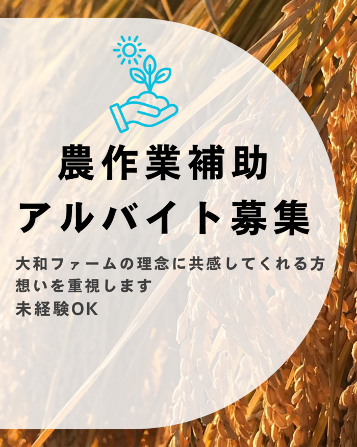大和ファームにて農作業補助をお手伝い頂けるアルバイトを募集いたします。